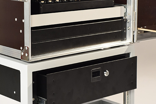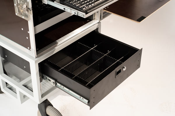 Audio Box (Flight Case) is built in a 19″ rack standard from Aluminum and waterproof plywood with Protex Stainless Steel locks and hinges. It can be customized for different sound recorders and mixing consoles – control surfaces. Audio Box has a fully removable door. Also there is a shelf that can accommodate small or medium size keyboard. Optional keyboard shelf can be replaced with tablet holder. Under the mixing consoles – control surfaces shelf is 19” 2U space ready to accommodate drawer or anything else that is 19” 1U or 2U size.
