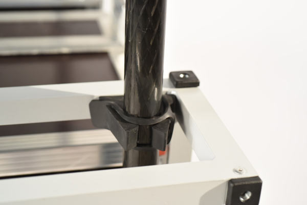 Smart Sound Cart has a place to hold boom poles, RX/TX mast, umbrella and hooks. This audio cart is equipped with 2 holders (for boom poles, antenna pole or umbrella) with 3 custom made adapters (Ø21mm, Ø26mm and Ø31mm). For placing optional clamp for fixing umbrella there is plate that is dedicated for installing mounting clamp (we recommend Nano clamp 386B by Manfrotto).